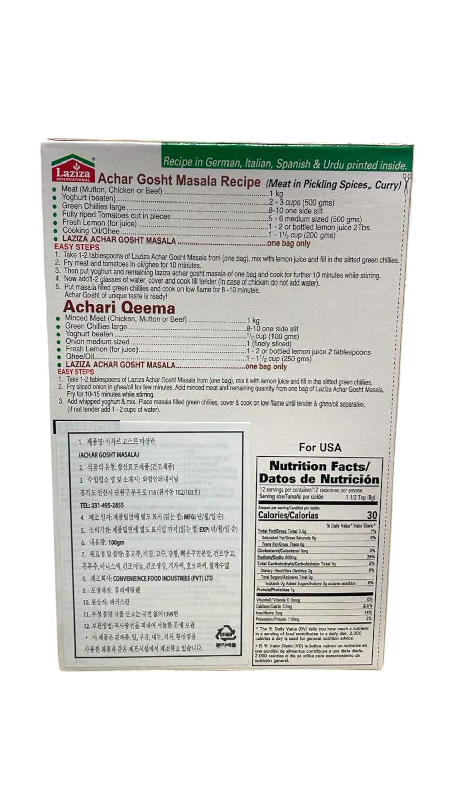 LAZIZA Achar Gosht Masala 100g 아차르 고스트 마살라